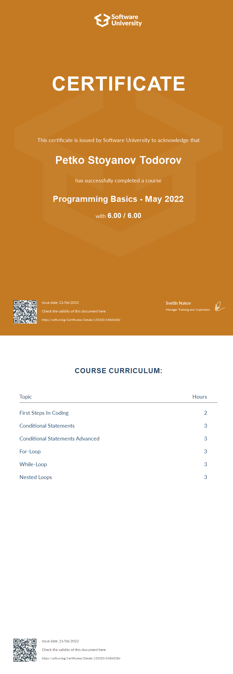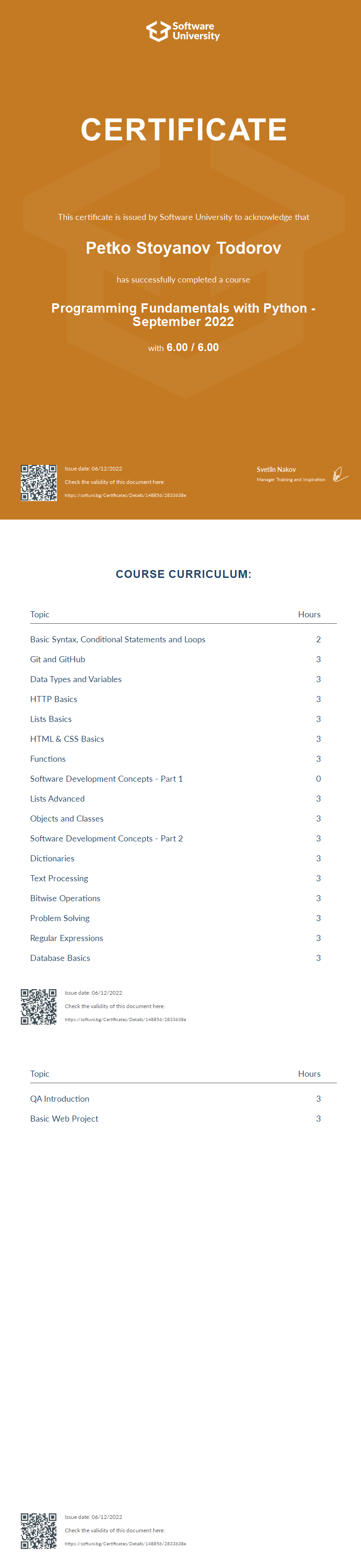 Certificates